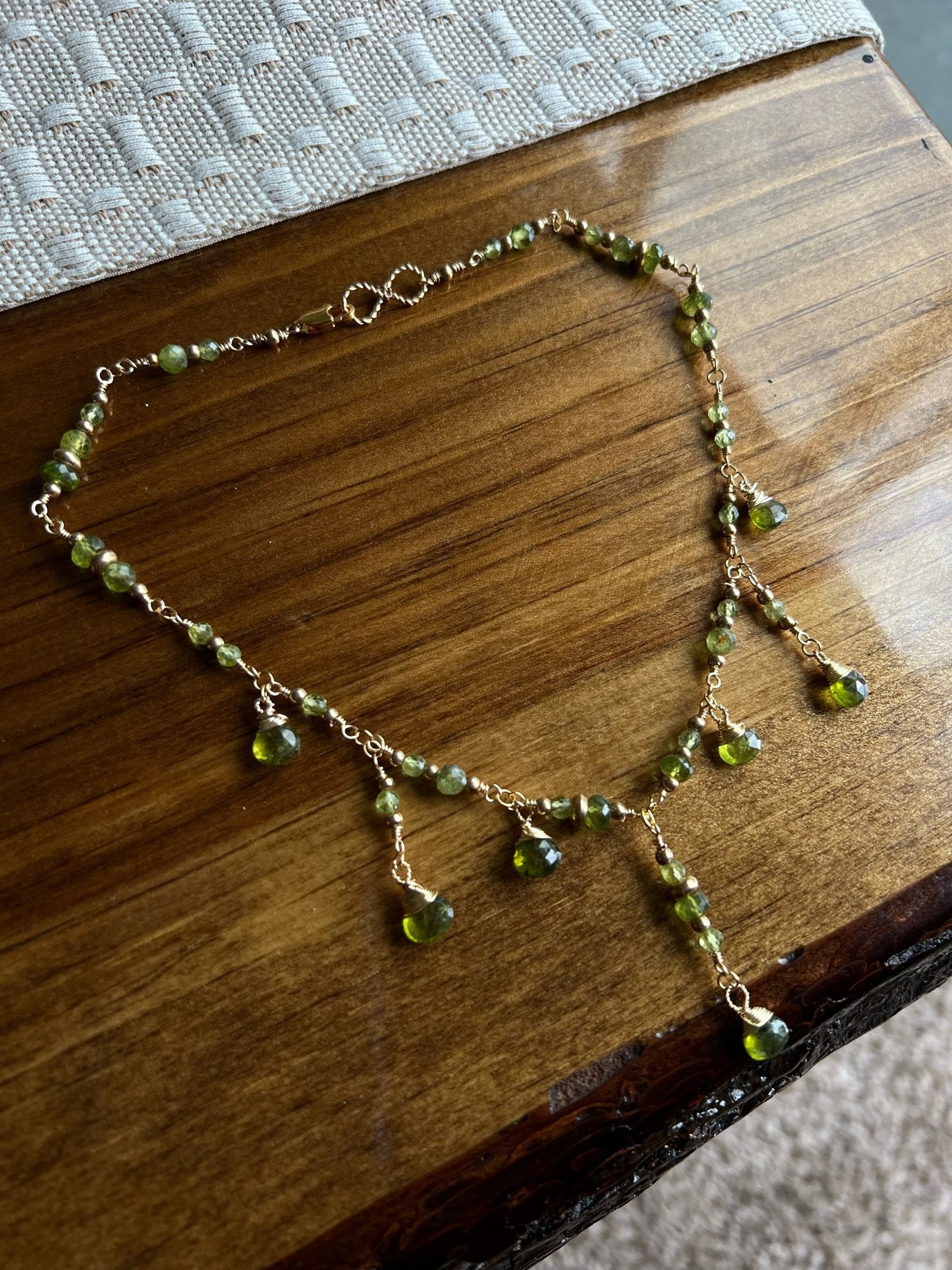 ༺ Made with stunning green tones. The rich essence of vesuvianite and peridot mixed with gold creates a luxurious earthy composition.