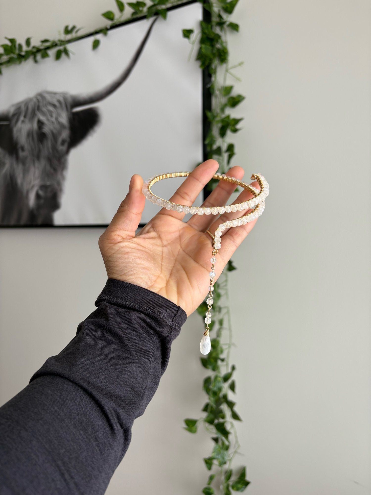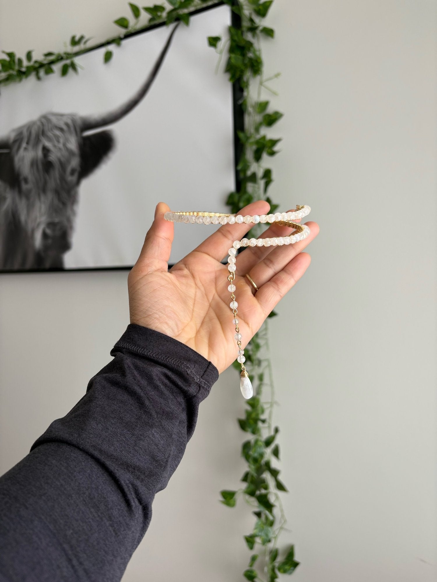 Made with real rainbow moonstone dipped in gold