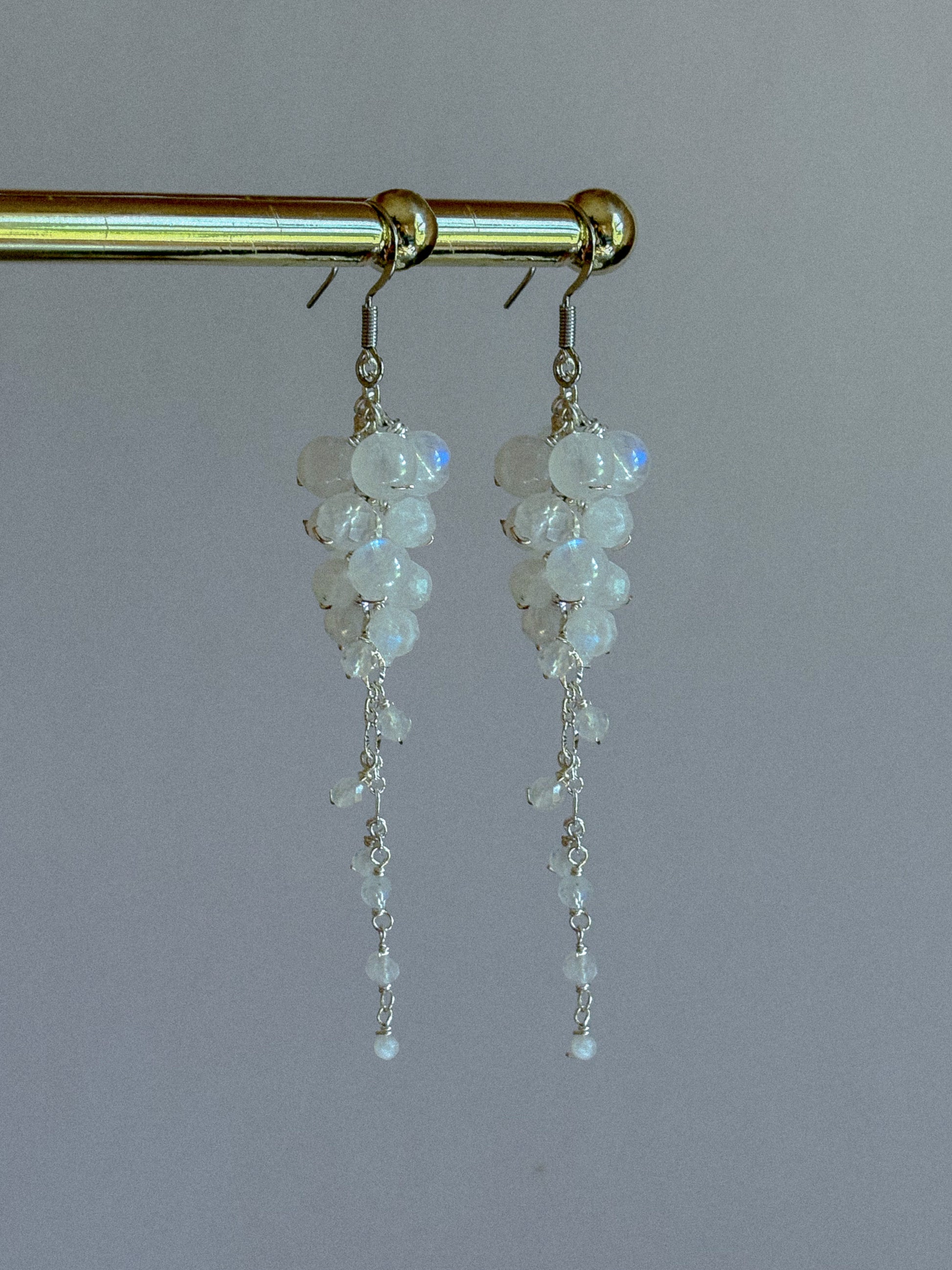 Moonstone earrings wrapped in stunning silver wire. It’s soft, elegant, and ethereal.