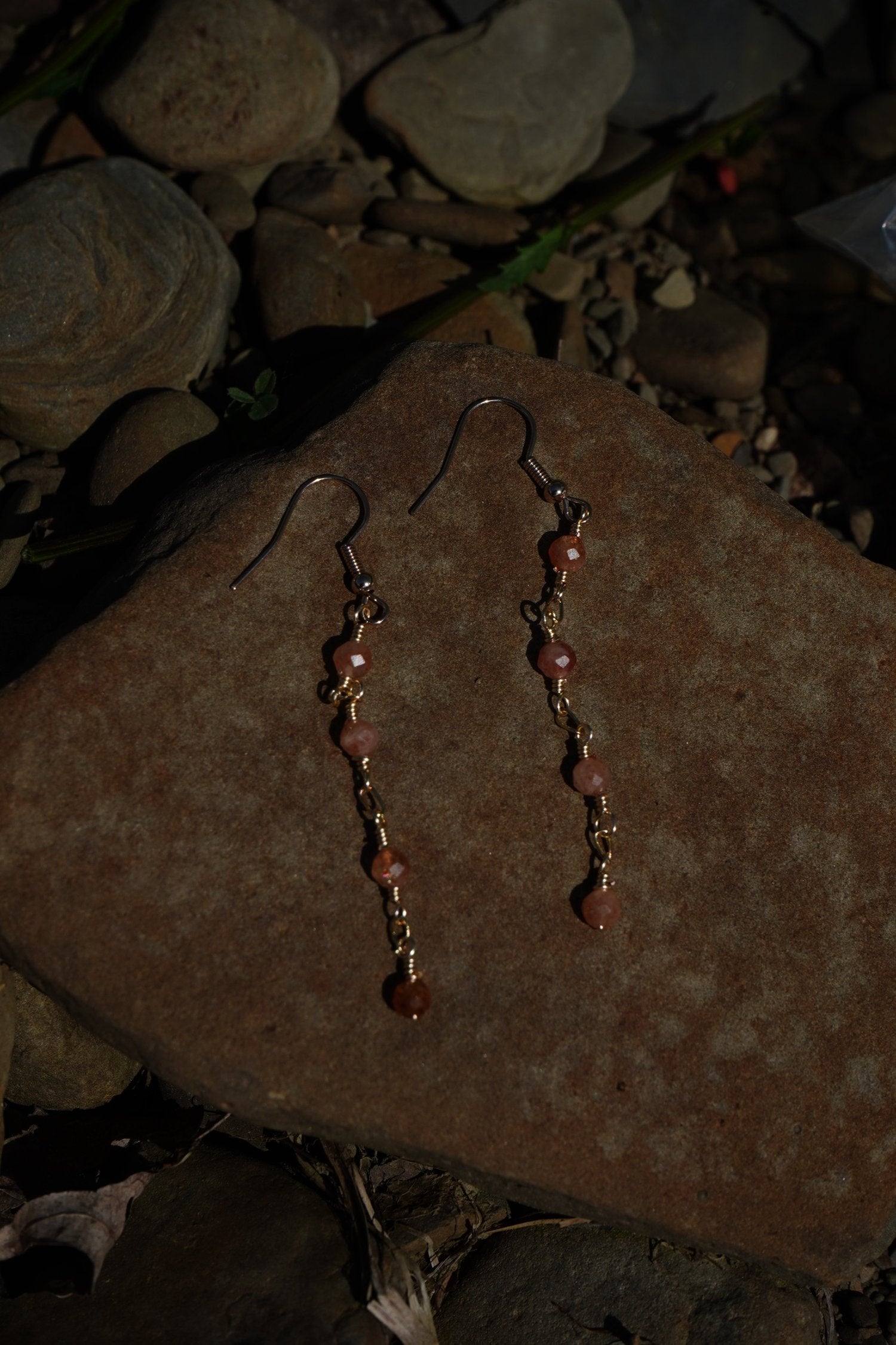༺ Hand wrapped sunstone earrings