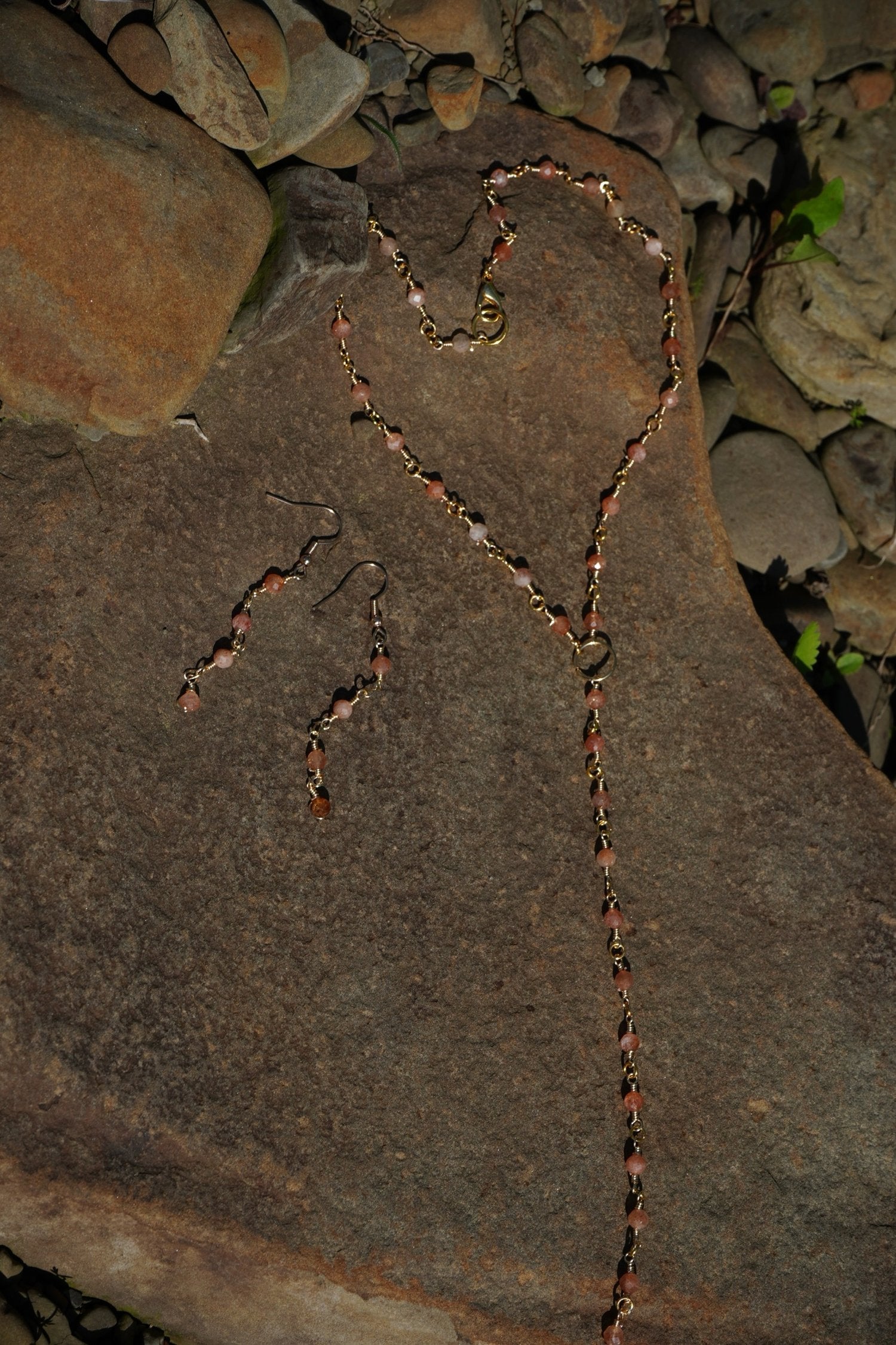 ༺ Summer embodies. A necklace set made with AAA grade sunstone.